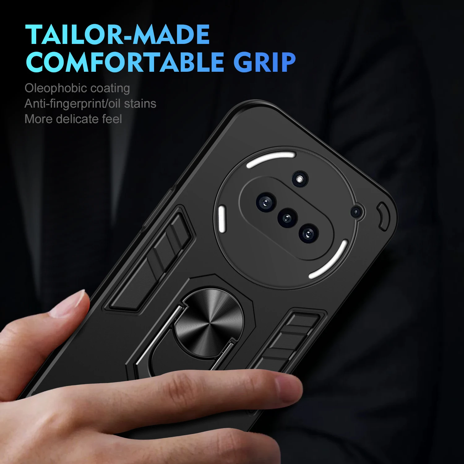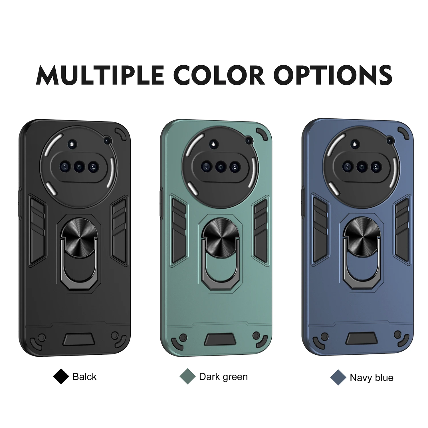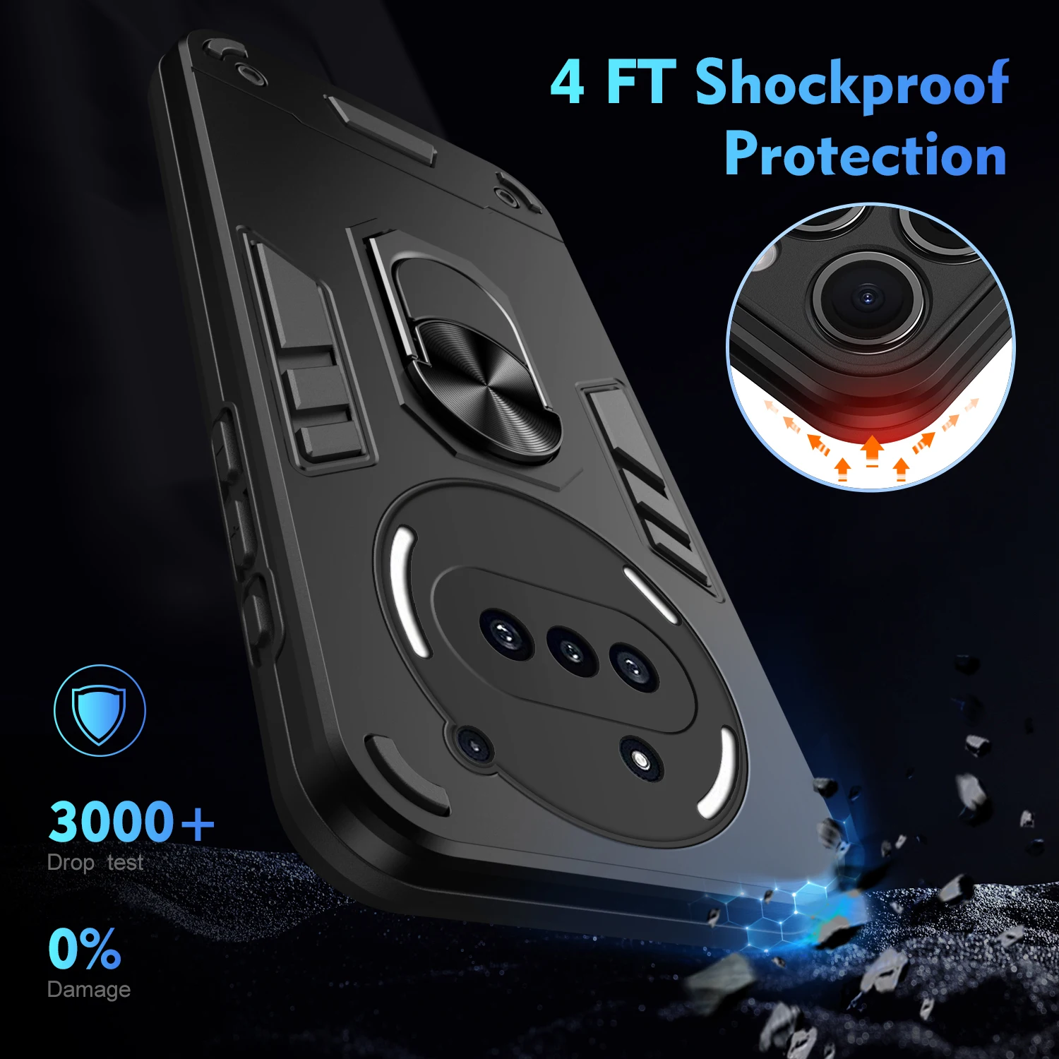 2.Made Of High Quality Hard Plastic + Rubber/Silicone/TPU + Rotatable Ring Holder.